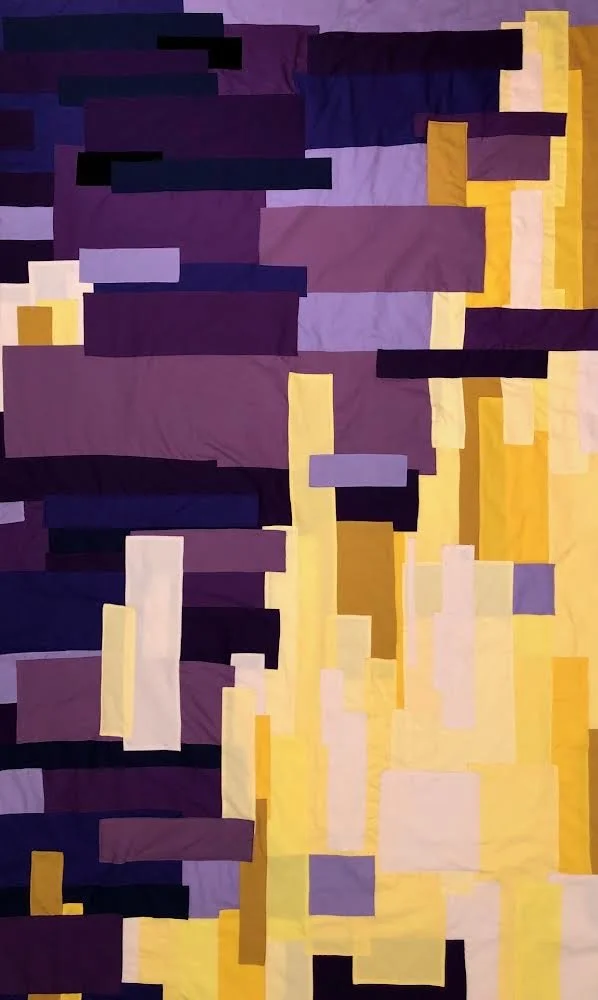 Quilt by Jenn Jacobson. In the last year I experienced some of the hardest moments in my life, and some of the best moments in my life. I wanted to create something that explored how two opposing emotions can be interwoven, dependent on one another, and coexistent. (You can view this quilt in person at Sanctuary.)